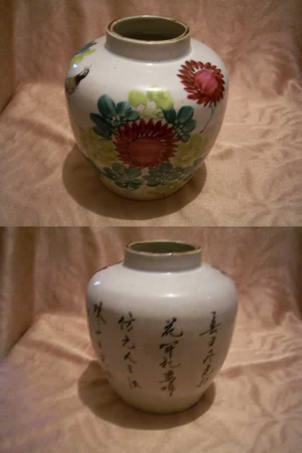 名 称:  粉彩花鸟诗文罐  种 类: 清朝  编 号:  224